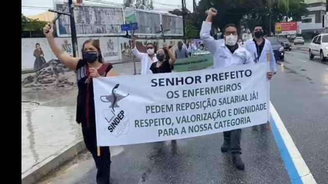 Gritando palavras de ordem, com faixas, cartazes e uma manifestação pacífica, os enfermeiros de João Pessoa tomaram as principais ruas da capital, exigindo melhores condições de trabalho, reposição salarial, além de respeito e dignidade com a profissão.