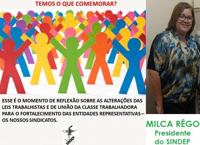 O SINDEP – Sindicato dos Enfermeiros do Estado da Paraíba, através da sua presidente, Milca Rêgo, elaborou mensagem pela passagem deste 1º de maio, Dia do Trabalhador. Ela destaca as perdas e alterações que as leis trabalhistas vem sofrendo, principalmente após a recente reforma, datada de novembro de 2017.