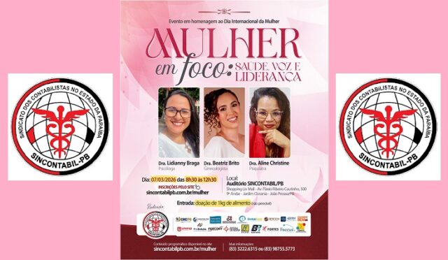 O acesso ao evento “MULHER EM FOCO: Saúde, Voz e Liderança” será atrevés da doação de 1Kg de alimento não perecível e as inscrições já podem ser realizadas pelo site sincontabilpb.com.br/mulher